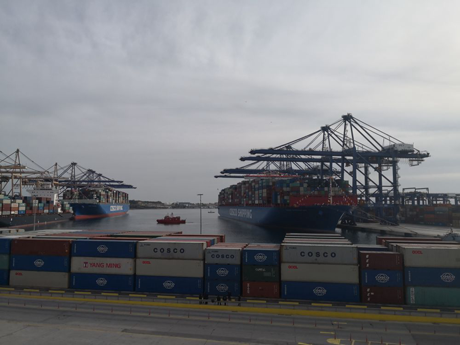 兩艘巨輪,一艘是2萬標準箱級集裝箱船“中遠海運獅子座”,一艘是1.4萬標準箱級集裝箱船“中遠海運比利時”,它們滿載著來自中國、新加坡、越南、馬來西亞的貨物,從太平洋經由蘇伊士運河駛入地中海,將由比港駛往荷蘭鹿特丹和德國漢堡。
