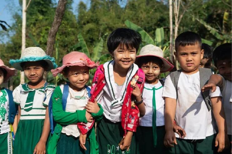 ▲這是1月13日在皎漂縣中國援建學校拍攝的小學生。孩子們臉上涂著當地人常用的天然防曬護膚品“特納卡”。新華社記者杜宇攝