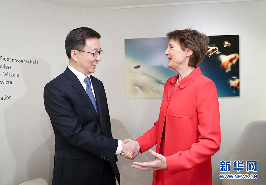 1月20日至21日,應(yīng)瑞士聯(lián)邦副主席帕姆蘭邀請(qǐng),中共中央政治局常委、國務(wù)院副總理韓正訪問瑞士。這是1月21日,韓正會(huì)見瑞士聯(lián)邦主席索馬魯加。 新華社記者 丁海濤 攝