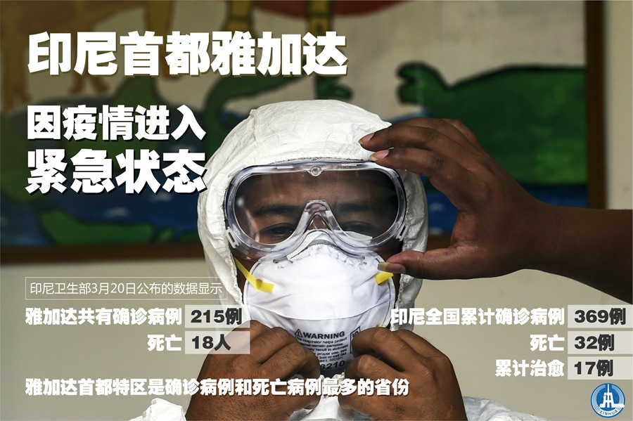 印尼衛生部20日公布的數據顯示,雅加達首都特區是確診病例和死亡病例最多的省份,目前雅加達共有確診病例215例,死亡18人。印尼全國累計確診病例369例,死亡32例,累計治愈17例。
