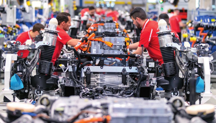 3月5日,工人在位于德國(guó)斯圖加特的保時(shí)捷汽車工廠生產(chǎn)線上工作