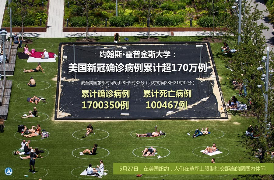 新華社紐約5月28日電 美國約翰斯·霍普金斯大學28日發布的新冠疫情最新統計數據顯示,截至美國東部時間28日9時32分(北京時間28日21時32分),美國累計確診病例達1700350例,累計死亡病例達100467例。