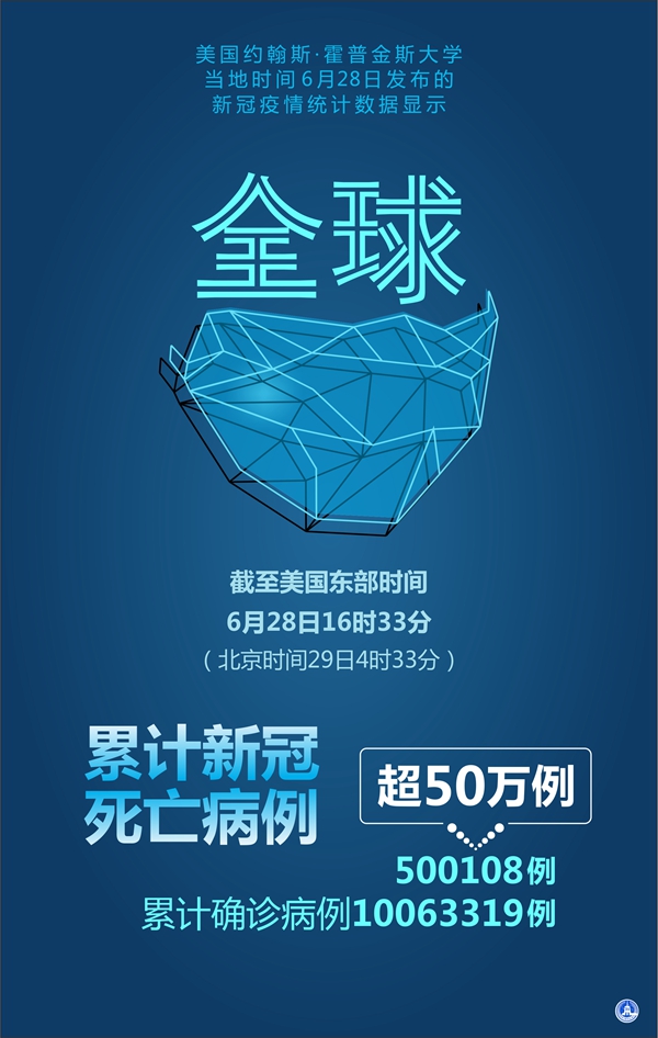 新華社北京6月29日電? 28日全球疫情簡報:美機構(gòu)統(tǒng)計全球累計新冠病例超1000萬 死亡超50萬