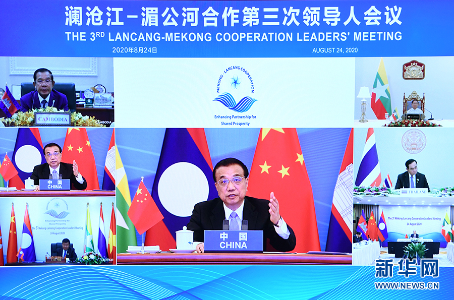 新華社北京8月24日電(記者鄭明達)國務院總理李克強24日上午在人民大會堂出席瀾滄江-湄公河合作第三次領導人視頻會議。李克強和老撾總理通倫共同主持會議。柬埔寨首相洪森、緬甸總統溫敏、泰國總理巴育、越南總理阮春福出席。