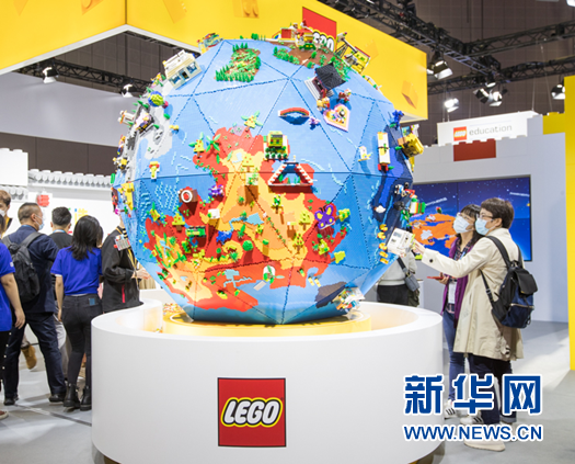 樂高玩具拼成的“地球”在樂高展區特別引人注目。新華網 發