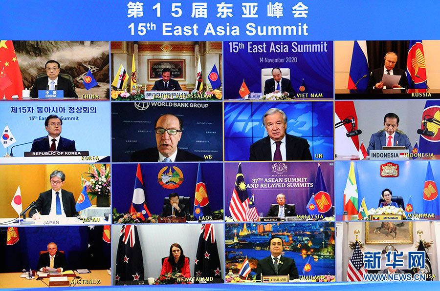 新華社北京11月14日電 國務(wù)院總理李克強14日晚在人民大會堂出席第15屆東亞峰會。東盟十國領(lǐng)導(dǎo)人以及俄羅斯總統(tǒng)普京、韓國總統(tǒng)文在寅、日本首相菅義偉、澳大利亞總理莫里森、新西蘭總理阿德恩、印度外長蘇杰生、美國總統(tǒng)國家安全事務(wù)助理奧布萊恩等與會。越南總理阮春福主持會議。會議以視頻形式舉行。