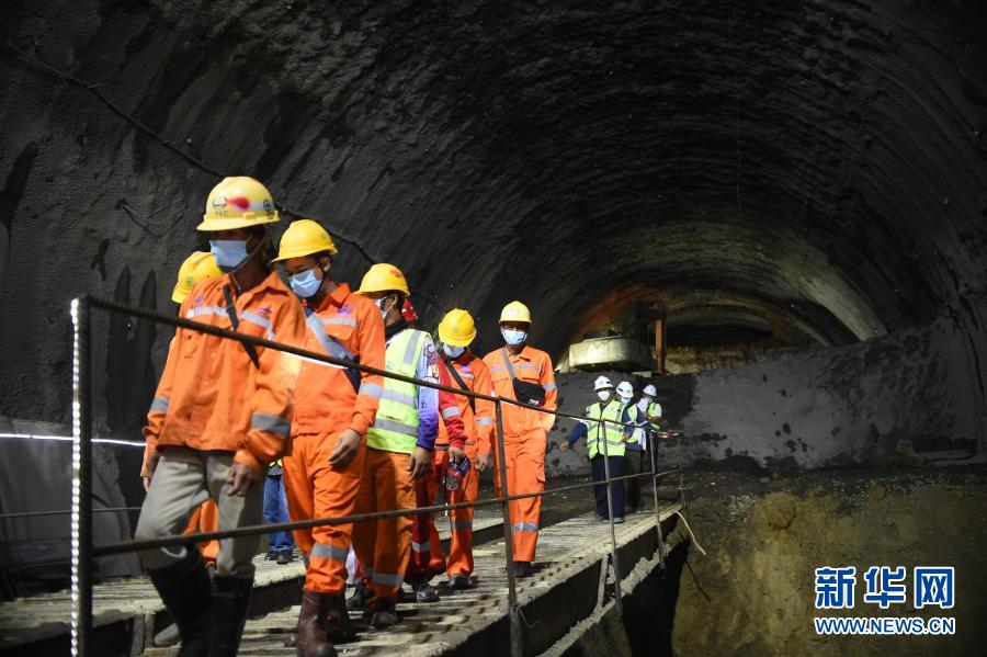 11月15日,施工人員走在印度尼西亞西爪哇省的雅萬高鐵7號隧道內。新華社發(祖卡南 攝)