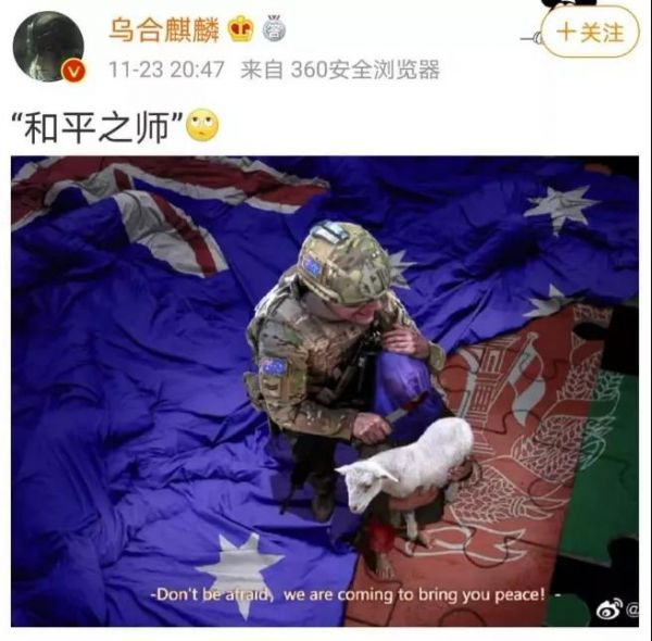 “莫里森的憤怒到底是什么?‘照片’?我想不是。真正令他惱怒的是,他認為中國人無權對澳大利亞特種部隊在阿富汗的謀殺行為發表評論。”