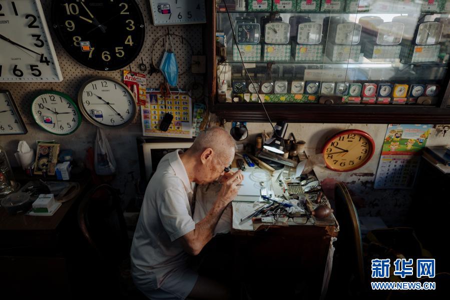 韋華老師傅今年84歲,在馬來西亞雪蘭莪州巴生的郁昌表行修理鐘表。
