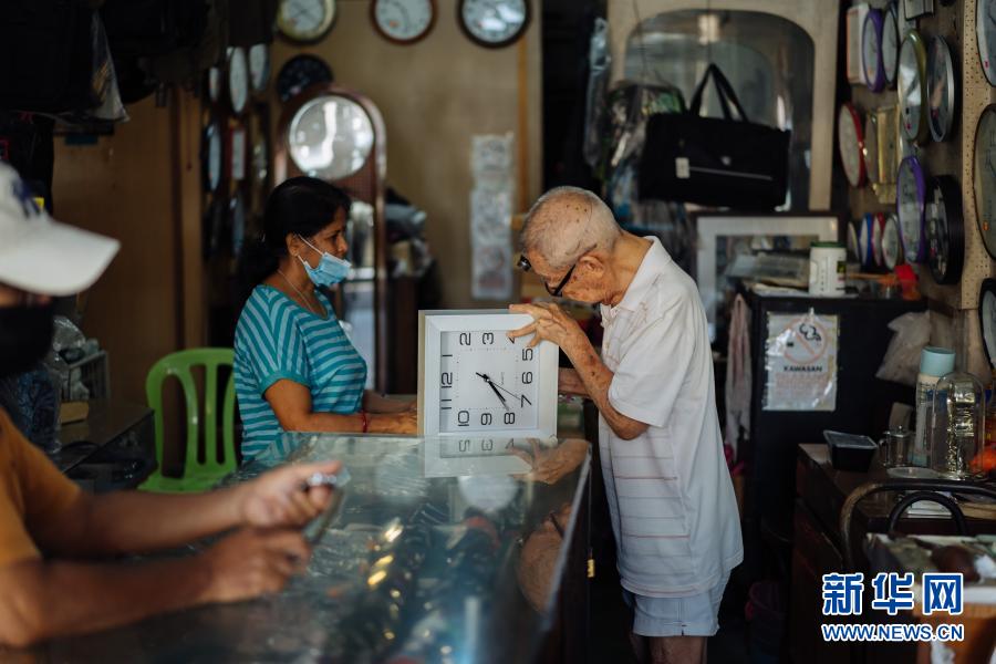 12月5日,在馬來西亞雪蘭莪州巴生的郁昌表行,韋華查看顧客送來的時鐘。新華社記者 朱煒 攝