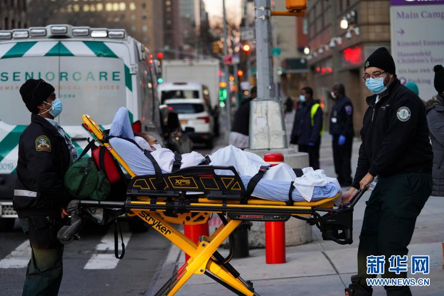 12月8日,醫(yī)護(hù)人員在美國(guó)紐約一家醫(yī)院外運(yùn)送病人。美國(guó)約翰斯·霍普金斯大學(xué)8日發(fā)布的新冠疫情最新統(tǒng)計(jì)數(shù)據(jù)顯示,美國(guó)累計(jì)確診病例超過1500萬例。新華社記者 王迎 攝