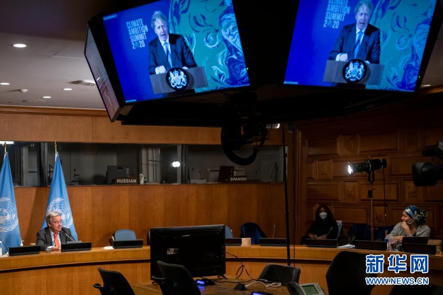 12月12日,在位于紐約的聯合國總部,聯合國秘書長古特雷斯(左)出席氣候雄心峰會。聯合國秘書長古特雷斯12日在氣候雄心峰會上致辭,呼吁全球進入“氣候緊急狀態”。新華社發(聯合國供圖)