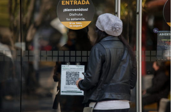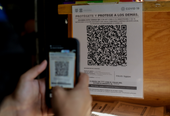 記者在墨西哥城街頭看到,一些銀行、電影院、博物館、購物中心等場所入口顯眼處貼有二維碼,民眾掃碼數秒后,便會生成地點和時間等基本數據。