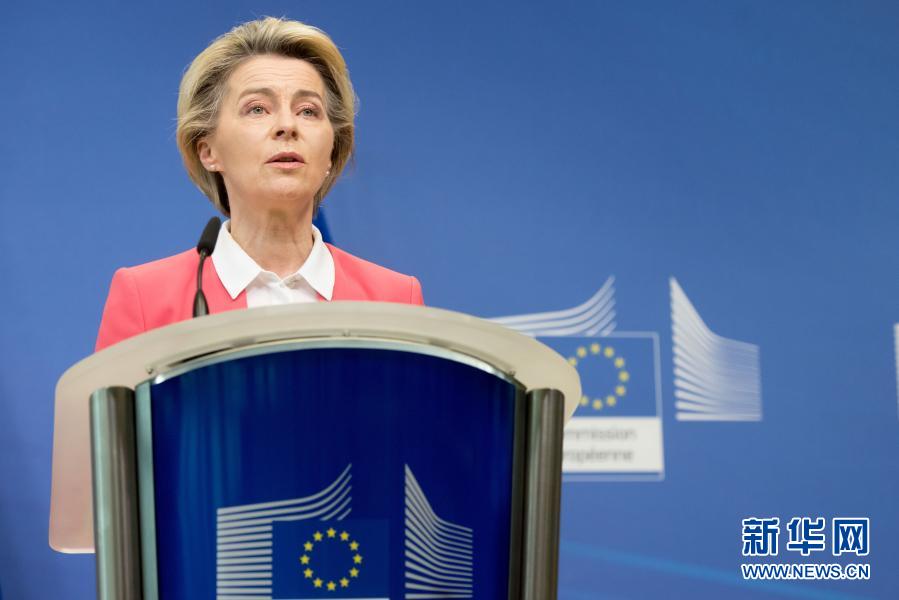 12月13日,在比利時布魯塞爾的歐盟總部,歐盟委員會主席馮德萊恩發表講話。新華社發(歐盟供圖)