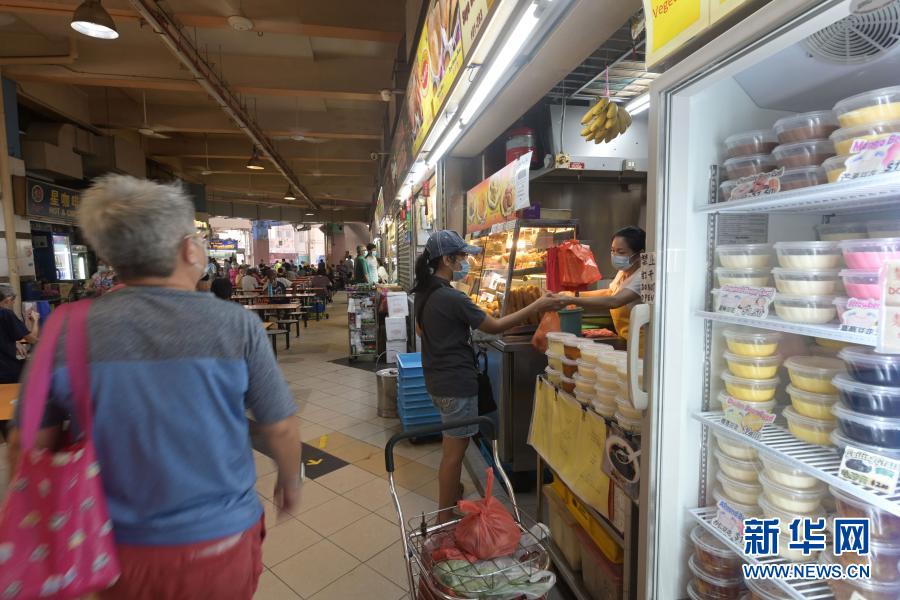 12月17日,食客在新加坡竹腳小販中心購買食品。