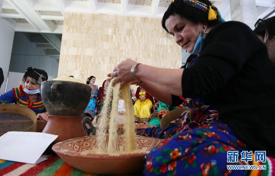 12月17日,在阿爾及利亞首都阿爾及爾,柏柏爾婦女在一個文化活動上制作“古斯古斯”。