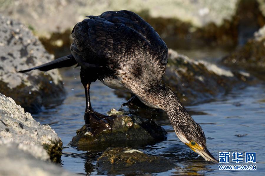 12月20日,一只鸕鶿在科威特杰赫拉省海邊覓食。新華社發(加齊攝)