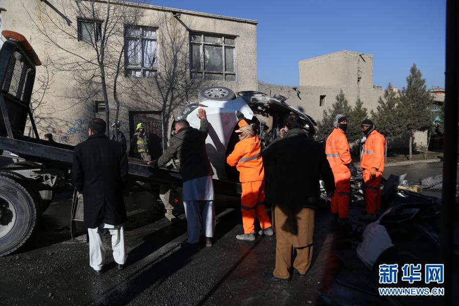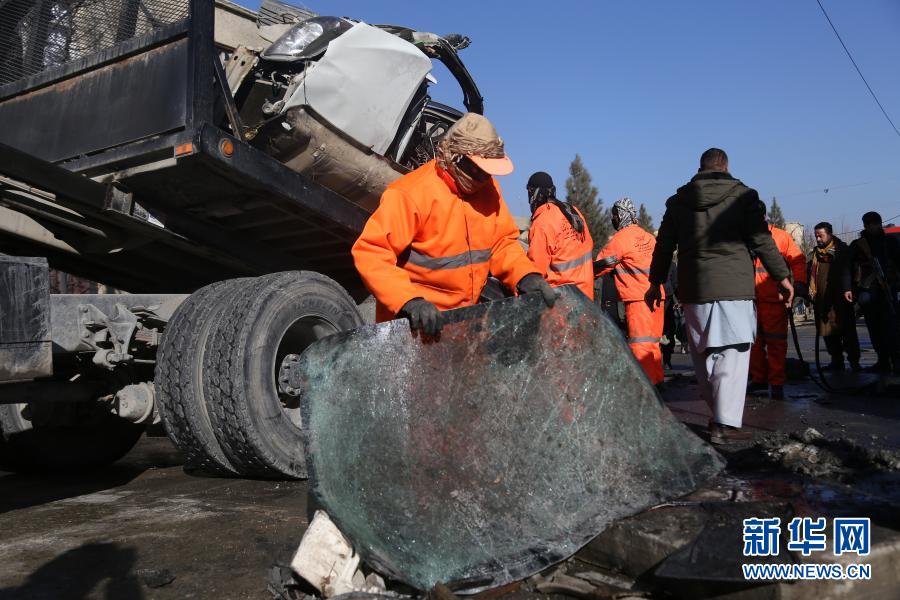12月22日,在阿富汗首都喀布爾,工作人員清理爆炸現場。新華社發(賽義德攝)