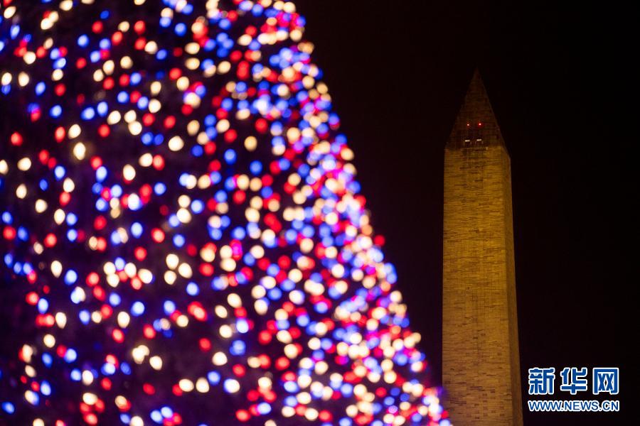 這是12月24日在美國(guó)華盛頓拍攝的華盛頓紀(jì)念碑和國(guó)家圣誕樹。