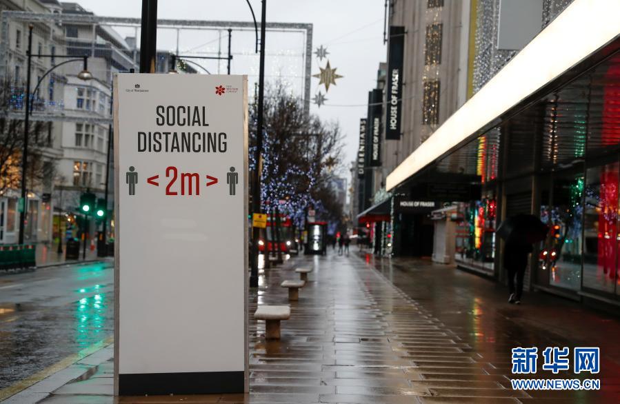 12月21日,英國倫敦的商業街牛津街一片冷清。新華社記者 韓巖 攝