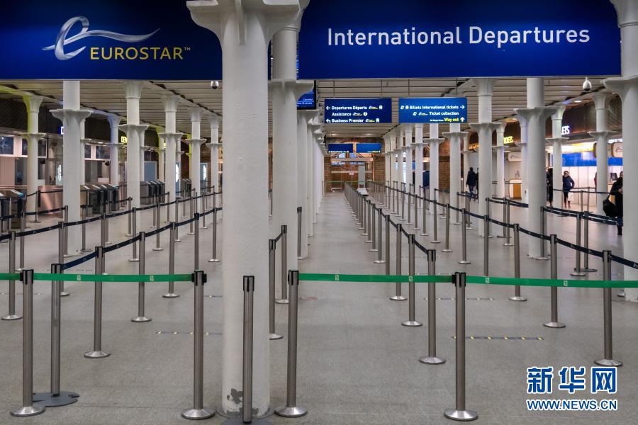 這是12月21日在英國倫敦圣潘克拉斯火車站拍攝的空蕩蕩的“歐洲之星”國際出發大廳。新華社發(蒂姆·愛爾蘭攝)