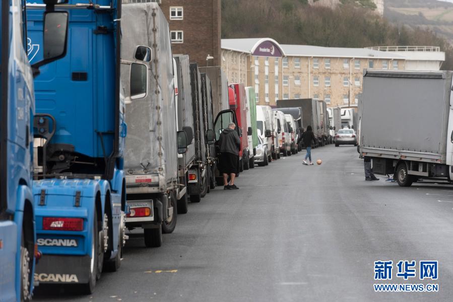 12月22日,在英國多佛,貨車因多佛港關閉在外排隊。新華社發(雷伊·唐攝)