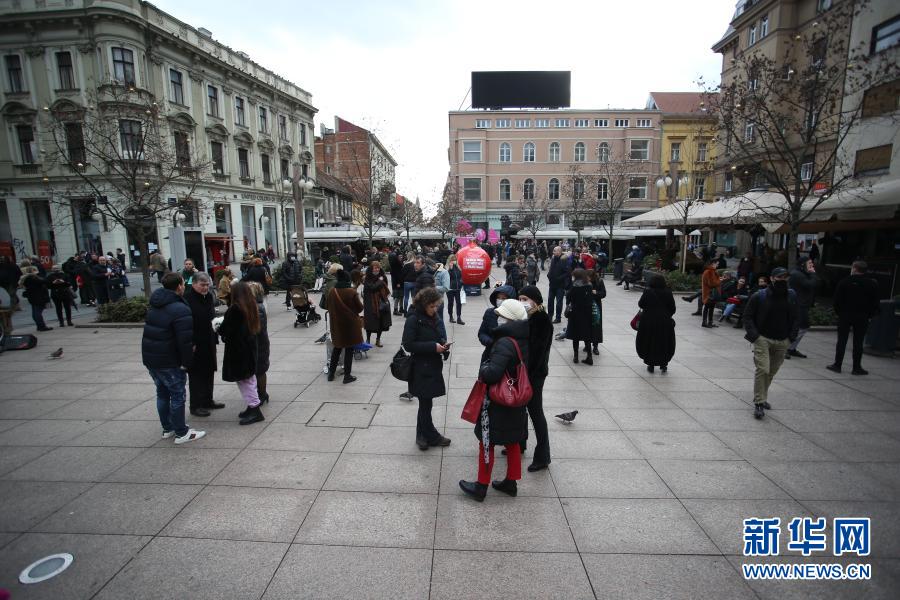 12月29日,在克羅地亞首都薩格勒布,人們在地震后聚集在市中心的一處廣場。新華社發(Pixsell圖片社 烏魯卡洛維奇攝)