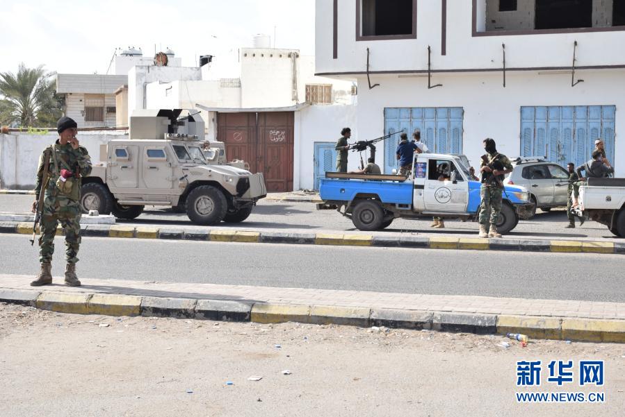 12月30日,在也門亞丁,政府軍士兵在爆炸后封鎖了亞丁國際機場的入口。新華社發(穆拉德·阿卜杜攝)