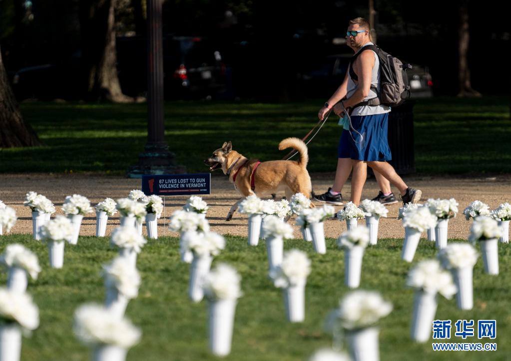 當日,四萬朵白色絹花被擺放在國會大廈與華盛頓紀念碑之間的國家廣場草坪上,以紀念在全美槍擊事件中喪生的人們。據美國媒體報道,2020年美國造成四人及以上傷亡的嚴重槍擊案數量創下歷史新高,較2019年激增47%。同時,美國槍支銷售數量也突破歷史紀錄,民眾對公共安全擔憂加劇。