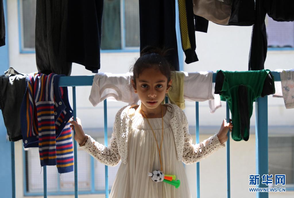 5月19日,受空襲影響而逃離家園的7歲巴勒斯坦兒童達娜·法拉杰在加沙城的一所學校臨時棲身。