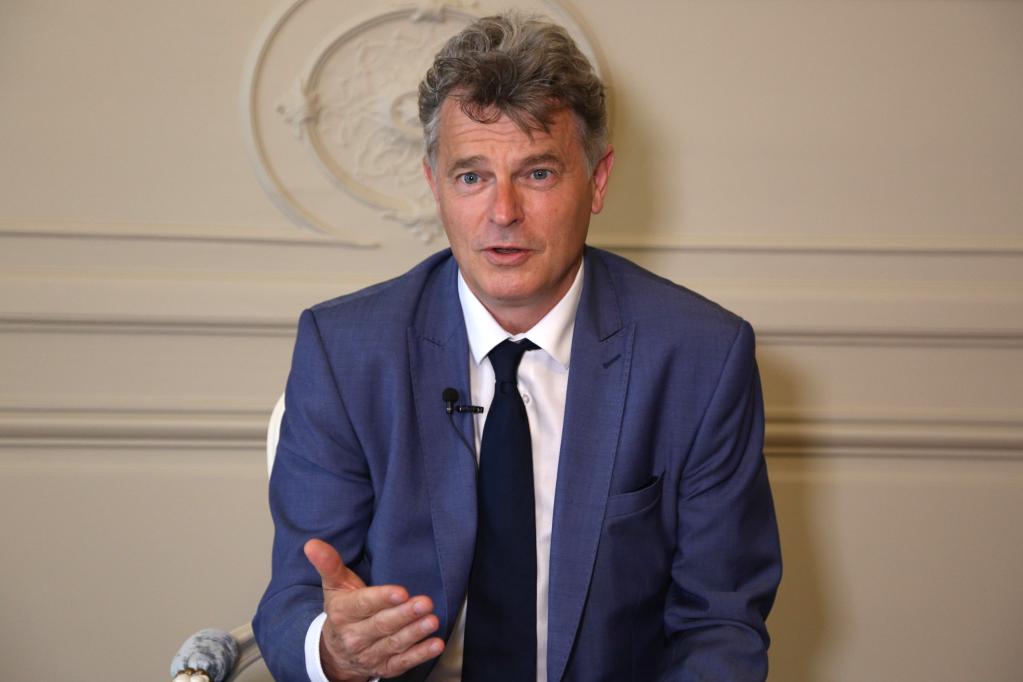 6月10日,法國(guó)共產(chǎn)黨全國(guó)書記法比安·魯塞爾在巴黎接受新華社記者采訪。新華社記者 唐霽 攝